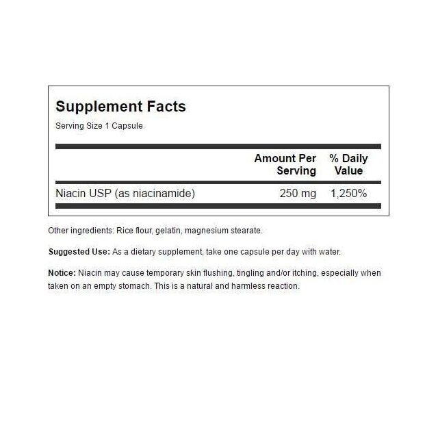 High-quality niacinamide capsules providing 250mg of Vitamin B3 per serving. Supports energy metabolism and cellular health. Suitable for daily use.